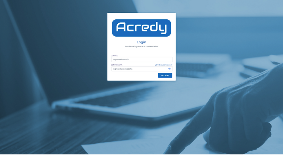 Para iniciar sesión con el usuario administrador, ingrese a www.acredy.com y en la parte superior derecha encuentra el botón ingresar, en el cual se debe hacer clic y despliega el login.